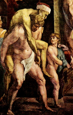 Détail de "L'incendie du bourg", fresque peinte par Raphaël (1514). Palais du