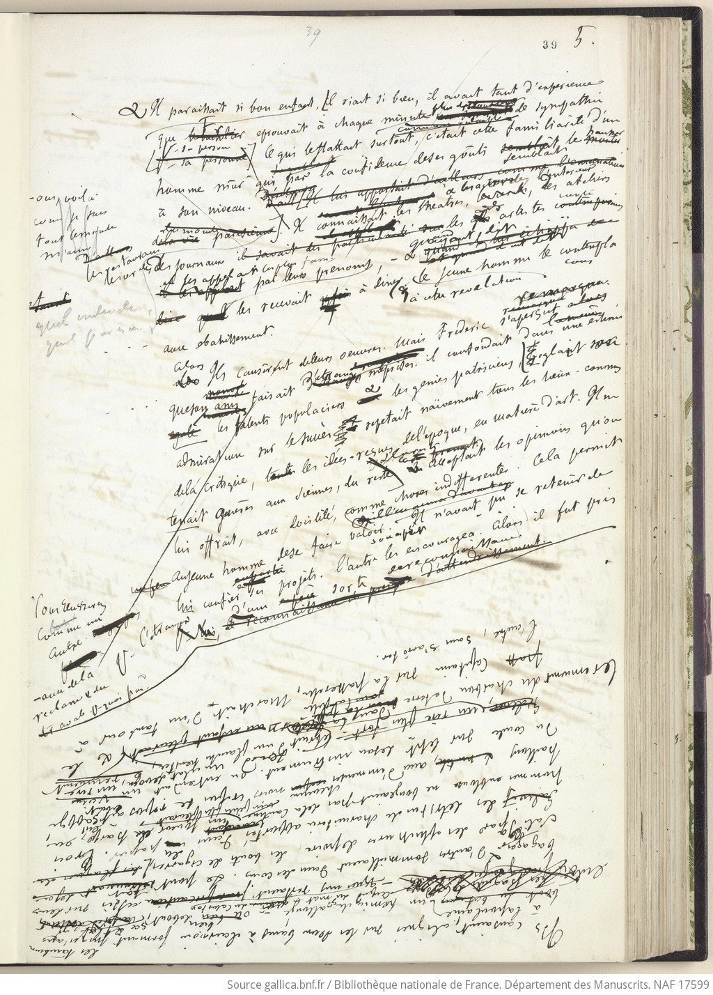 [Le bas de la page, écrit à l'envers, concerne le passage où Frédéric découvre Madame Arnoux. ]